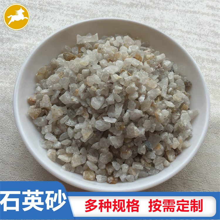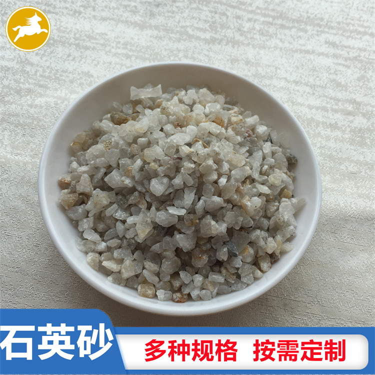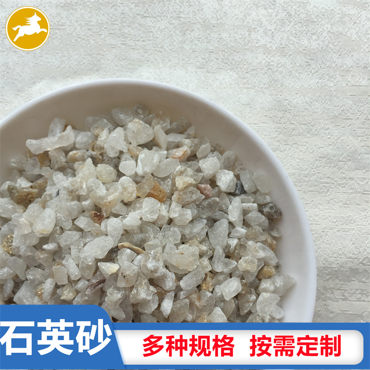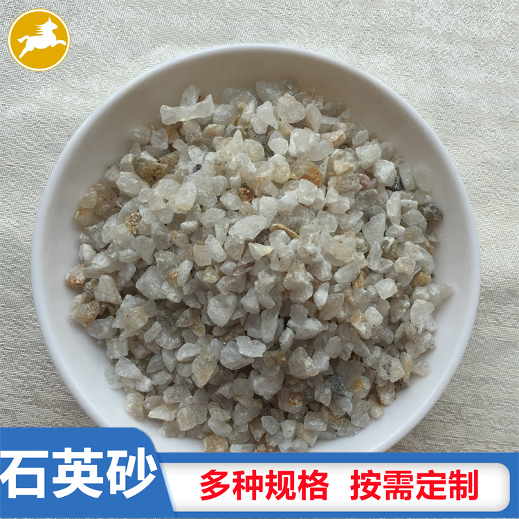 石英砂是石英石經破碎加工而成的石英顆粒。石英石是一種非金屬礦物質,是一種堅硬、耐磨、化學性能穩定的硅酸鹽礦物,其主要礦物成分是SiO2。石英砂的顏色為乳白色、或無色半透明狀,莫氏硬度7。